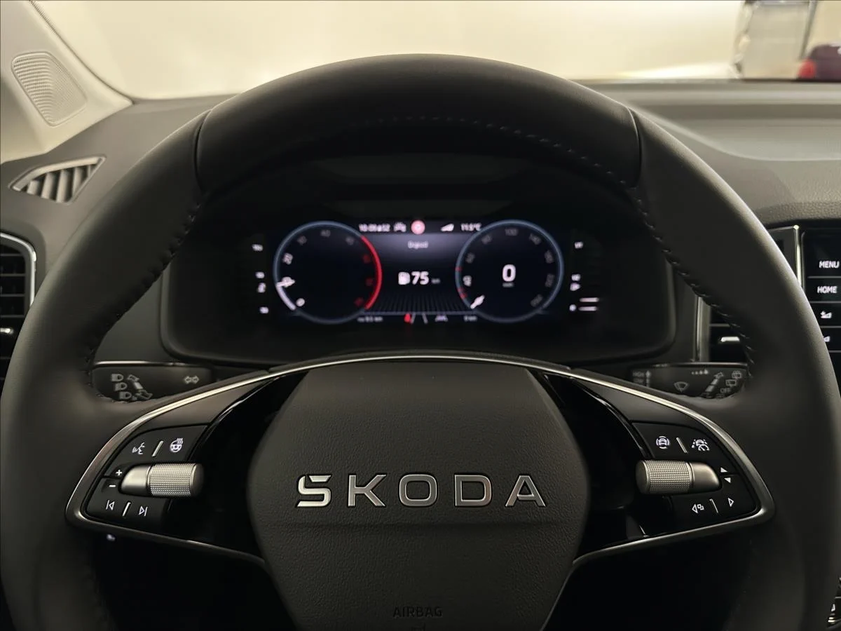 hlídání mrtvého úhlu); rozpoznávání dopravních značek; adaptivní vedení v jízdním pruhu; další informace k výbavě získáte u našich prodejců; ambientní LED osvětlení; el. nastavitelná přední sedadla s pamětí; personalizace s 3.klíčem) + paket ochrany cestujících (boční airbagy vzadu; proaktivní ochrana cestujících zepředu) + asistovaná jízda 1.5 + s navigací (prediktivní tempomat; TERMÍN ODBĚRU: vůz odběru od 10/25; DALŠÍ SLUŽBY: prodloužená záruka 5let / 100.000 km + předplacený servis 5 let / 100.000 km; EXTRA VÝBAVA: tří zónová klimatizace + 18' kola Miram + rezervní kolo + tažné zařízení + 230 V zásuvka + infotainment Navi 9' + business paket (Matrix-LED přední světlomety